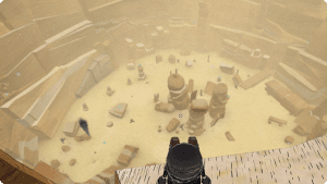 These mechanics in the beginning of the game feel quite impressive, and you’ll find yourself many times slicing everything into tiny objects and create as much chaos as you like n your environment. Almost everything you encounter in each of the six desert location can be fully destroyed, which makes exploring this harsh landscape a blissful exercise in creative demolition. As the game progresses however these mechanics become a bit tiring but not for long, as the game lasts for about 4 hours.